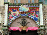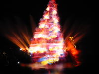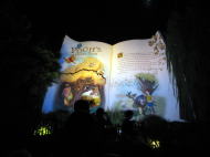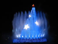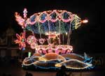夜のメデテレーニアンハーバーの「ファンタズミック!」は魔法使いの弟子となったミッキーが作り出すイマジネーションの世界。帽子の上の赤いのがミッキーです。 |