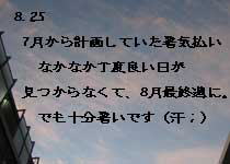 | 今年は猛暑で酷暑で・・。お疲れ様でした。明日からお休みです。 |
