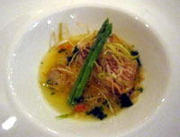 魚料理は甘鯛。ソースにはお米粒の形のパスタが入っていました。とても美味でした |