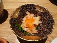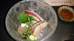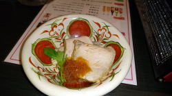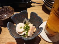 付きだしはいくらと鮭とおこうこの和え物 |