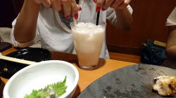 下戸のミキちゃんが頼んだキウイソーダにはキウイがごろごろ入っていてばえる! |