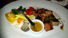 | 夕食はファンタジアをイメージして若林シェフがプロデューしたスペシャルメニューをS.Sコロンビア号でいただきました。 |