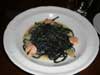 オリーブ油で頂くフォカッチャ、イカスミパスタ、ビーフシチュー、ティラミス |