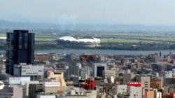 鳥屋野潟とビッグスワン。新潟の街は信濃川が運ぶ砂でできました。 |