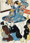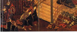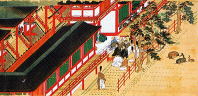 | 「仙人と烏鷺(うろ)」。烏と鷺とは黒と白、即ち囲碁のこと。余りに長い仙人の対局を木こりが見物しているうちに斧が腐ってきたところだそうです |