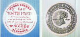 上は西洋の歯ブラシ。子供が生まれると祖母が銀製の歯ブラシを贈るなどの習慣もありました。下左は「歯石を取り歯を白くする」右は「歯と歯肉を美しくする」西洋の歯磨剤の陶製容器 |