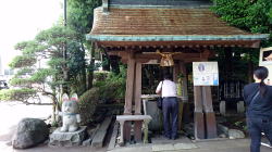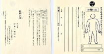 ここは色々な病封じの祈願に訪れる人で混雑しています。↑は「お願い文」。封じたい病と祈願者の名前を書いて神様へのポストに投函します。 |