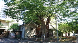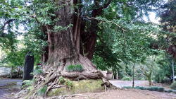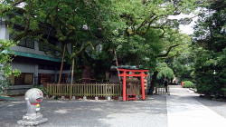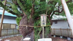 | ご神木の大楠はとても立派です。手前にいるのはドラえもん! |
