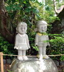 高さ4、5mほどの墳頂に地蔵堂があることから「地蔵塚古墳」と呼ばれています。左は堂内の地蔵菩薩、右は隣り合った祠の石地蔵。 |