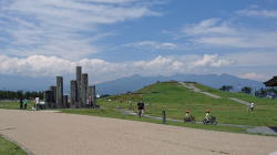 | 真名板高山古墳は全長90mもある前方後円墳。周辺の出土品などから6世紀後半の築造と推定される。 |