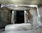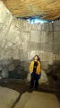 石室の中に入ると電気が点きます。哲雄先生は身長168cm。石室の大きさが分ります。出土した多数の青銅器や須恵器はさきたま史跡の博物館に展示。 |