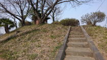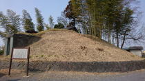 | 小見(おみ)真観寺古墳は、慈霊山真観寺の境内にあります。全長112mの前方後円墳。7世紀前半のものと推定されます |