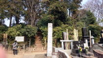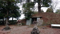 寛永11年に石室が発見され、明治13年に発掘調査が行われて、副葬品の太刀や鉄鋏等は国立博物館に展示されています。 |