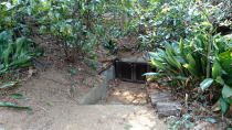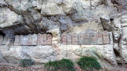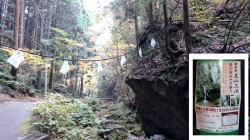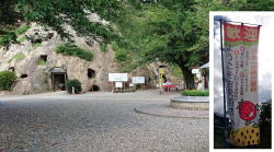 | 百穴(ひゃくあな)は古墳時代後期に死者を埋葬するために掘られた横穴群。戦時中、地下工場を作る為に破壊された部分もありますが、現在は天然記念物「ヒカリゴケ」の生息も確認され、保存されています。 |