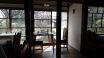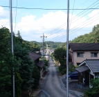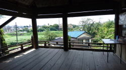 お堂の舞台(?)に立つと、緑豊かな東松山の田園風景が広がっています。床板がぎしぎしいうのでちょっとコワイ。 |