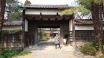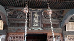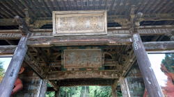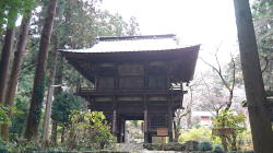 隣り合う真名板薬師堂。江戸時代は花蔵院という寺があったが維新の際に壊され、薬師堂と楼門と3本の大銀杏が残っている。 |