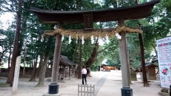 夏越の大祓で茅の輪くぐりをしました。ご遷座1220年記念事業で新築された社殿はぴかぴかです。 |