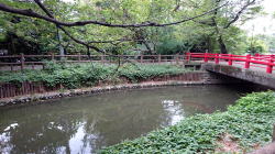 今も境内は広く、 稲荷神社、松尾神社、宗像神社など多くの社殿があり、4つの池と深い森に囲まれています。 |