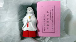 女體神社の「巫女人形」に願をかけ、願いが叶ったら、このお人形に着物を着せて奉納します。 |