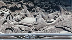 「二頭の一角霊獣」。龍の長を表したものらしい。このような霊獣が神殿に彫刻されるのは珍しいそうです。 |