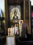 格子の向こうは暗くてよく見えないけれど、観音様がおまつりされています。お賽銭が箱の横からこぼれちゃうんですけど・・・。(笑) |