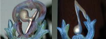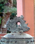 「獏」一見、亀と波の彫刻なのですが、全体としての形をみると、悪夢を食べてくれるという「バク」の形になっています。 |