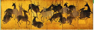 会場に入ってすぐ目を引く「鹿図屏風」 |