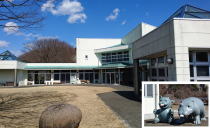 | ↑の博物館から車で25分、おがの化石館は歌舞伎で有名な小鹿野町にあります。右下はこの付近で化石が発見された珍獣パレオパラドキシアの親子モケイ 。カバやムーミンではありません。 |