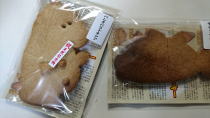 1500万年ほど前、秩父一帯は「秩父湾」すなわち海でした。クジラやサメの他に、海辺の哺乳類パレオパラドキシアの化石も発掘されています。左はパレオパラドキシア、右はチチブサワラのクッキー(!) |
