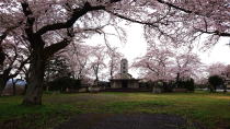 | 駅から西方面に10分ほど歩くと英霊塔のある広場は桜が満開でした。町には色々な種類の桜があるのでどれかは見ごろ |