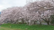 ここから南下して河畔の道を歩きました。日の出橋周辺から槻川沿いの遊歩道では桜がきれい。雨なのが残念でした。 |