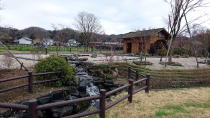 | 槻川をたどって行くと栃本親水公園に出ます。美しく整備され、水車小屋や休憩所、健康運動器具まで設置してありました |