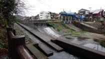 元禄年間には既に築かれていたという栃本堰。小川用水が引かれ、近隣の田畑を潤しました。左岸寄りの斜面は魚道。 |