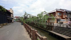 | 忠敬橋を中心に、「江戸勝り」を誇った商業の街並みが整備されています。震災で被害を受けた店や蔵も修復され、延期されていた電線埋設も終わったところです。 |