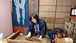 今は無料休憩所になっている、もとは漬物店だった(後ろに「なら漬」の看板あり)お店では、半被を着て帳場に座って大きなそろばんをはじき、番頭さん気分に浸ることができます。 |