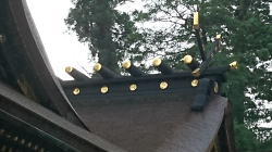 神社の格式の高さはこの、神殿の「鰹木」の本数でわかります。伊勢神宮が最高で10本。他の神社はこれを越えることはありません。香取神宮は9本です。 |