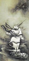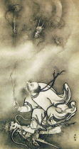 ↑の2枚も「呂洞賓図」です。龍に乗り、手にした壺から小龍が現れ、空から別の龍が睨んでいます。 |