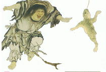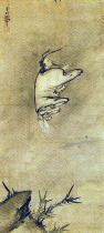 「蝦蟇鉄拐図」鉄拐上人が3本足のガマと相似形で踊っている。ガマは気味が悪いのですが、絵全体は軽やかなイメージ |