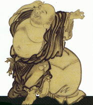 「欠伸布袋」のんびりした、ユーモアたっぷりの布袋様。他の仏画家たちとはひと味違う表現です。 |
