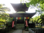 | 観音堂。H.8に修復なった県指定文化財十一面観音さまは子供をおんぶすることを顕現して左手掌が後ろを向いています。(甘露手) |