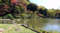 発掘調査と江戸時代の図絵から、庭園も復元されています。↑は築山泉水の北庭園。南庭園は夜間のライトアップがあるそうです |
