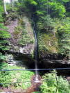 | 左写真の三重塔は維新の時再建中で、取り壊されるはずでしたが明治2年に竣工しています。真中は「矢立杉」。武田信玄が矢を立てて祈願した巨木。右は「瓶子(みすず)の滝」両側の岩を瓶子に見立ててそう呼ばれます。樹木や滝のパワーみなぎる参道です。 |