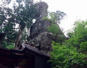 本殿背部に寄り添うように人型の奇岩があります。 この「御姿岩」の岩奥にご神体をお祀りしてあるそうです。 |