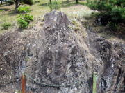 この辺りも隆起によってできた山。チャートと呼ばれる岩石で出来ています。古墳は形状などから6世紀後半のものと推定されます。 |