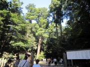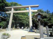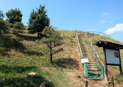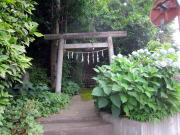 発掘された埴輪等から5世紀中頃のもので、毛野(ケヌ)国の首長の墓と推定されます。 写真は前方部・後円部の間の祠につづく鳥居。 |