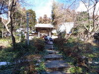 山門前の石段の下からまっすぐに のびた参道は、安楽寺の門前町を彷彿させます。 |