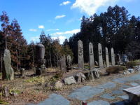 鎌倉時代には慈光山に栄西の高弟が臨済宗の霊山院を建てて禅道場を開きました。75坊が建てられ、全盛を誇った名残がこの板碑群です。 |