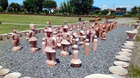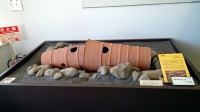 はにわ棺のレプリカ。円筒埴輪を二つ組み合わせた棺。骨になってから入れたのか?子供の埋葬に使用したのか? |