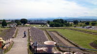 | 群馬県太田市には今でも多くの古墳が残っています。長さ210mの天神古墳は関東で最大の前方後円墳。周囲には二重の堀の跡があります。 |