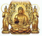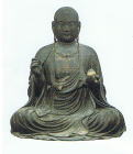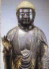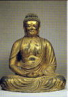 左の阿弥陀如来は宗慶作。埼玉加須市保寧寺蔵、脇侍も一緒でした。右の大日如来は静岡の修禅寺蔵。108cmほど。実慶作。どちらも国の重要文化財に指定されています。 |